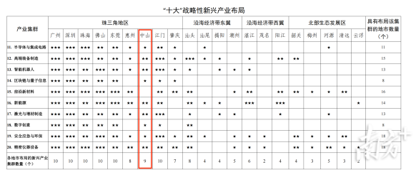 在“十大”戰(zhàn)略性支柱產(chǎn)業(yè)布局上,中山被列入全部產(chǎn)業(yè)布局范圍,是全省6個全部被列入的城市之一(分別為廣州、深圳、佛山、惠州、中山、江門)。其中,現(xiàn)代輕工紡織、生物醫(yī)藥與健康、現(xiàn)代農(nóng)業(yè)與食品3個產(chǎn)業(yè)將中山作為核心布局城市,智能家電、軟件與信息服務、超高清視頻顯示3個產(chǎn)業(yè)將中山作為重點布局城市。
