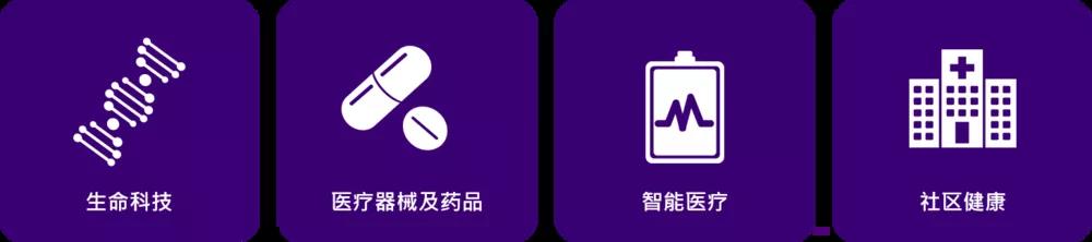 醫(yī)療器械及藥品 — 高性能材料、第二等級醫(yī)療器材、第三等級醫(yī)療器材、生物制劑、其他智能設備、機械人與新興技術、診斷。