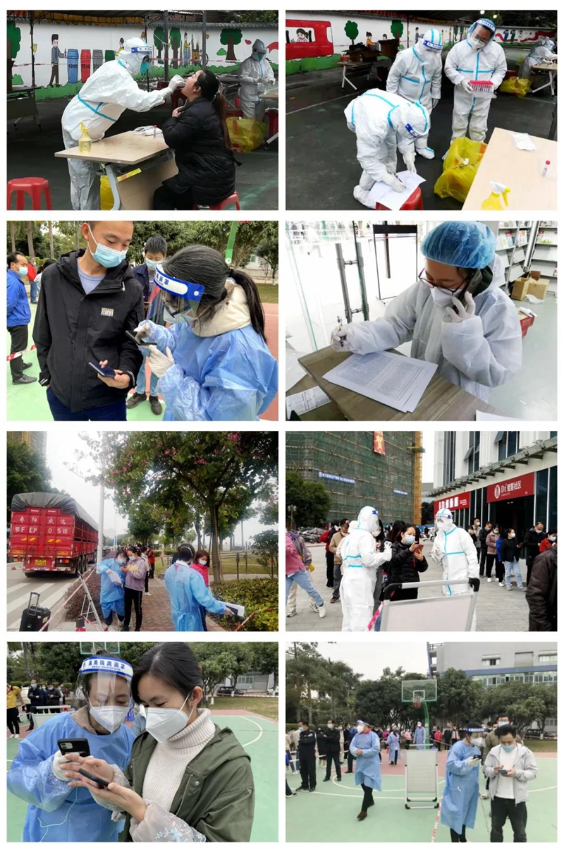 在這場沒有硝煙的戰(zhàn)爭中,一線醫(yī)務(wù)人員與志愿者忙碌的身影也成為最美的風(fēng)景線。由百靈生物、中智藥業(yè)、歐亞包裝、領(lǐng)先展示、樂心醫(yī)療、武藏精密、美捷時、天鍵電聲、九州通、聯(lián)洋科技等企業(yè)員工組成的志愿者自動請纓,用實際行動為“抗疫”助力。他們在檢測入口處指引群眾測體溫、指引葵花碼注冊、做登記、錄信息,維持現(xiàn)場秩序,為平安中山貢獻力量。