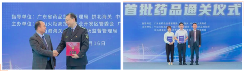 省藥品監(jiān)督管理局一級巡視員蘇盛鋒,省藥品監(jiān)督管理局二級巡視員羅卓雅,拱北海關(guān)黨委委員、副關(guān)長何宏愷,市委副書記、火炬開發(fā)區(qū)黨工委書記陳文鋒,副市長歐陽錦全等領(lǐng)導(dǎo)出席中山市藥品進口口岸啟動暨首批藥品進口通關(guān)啟動儀式。