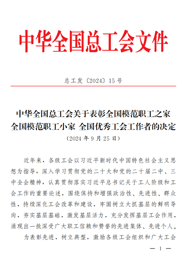喜報(bào)!健康基地園區(qū)1個(gè)集體獲評“全國模范職工之家”榮譽(yù)稱號