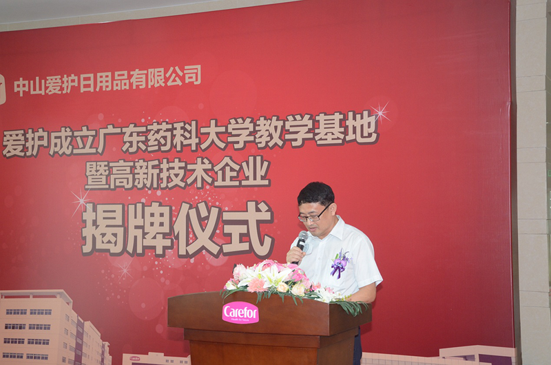 6月28日,愛護(hù)公司“廣東藥科大學(xué)教學(xué)基地暨高新技術(shù)企業(yè)成立”揭牌儀式在健康基地園區(qū)愛護(hù)廠房舉行;鹁骈_發(fā)區(qū)管委會(huì)主任招鴻、市科技局局長尹明、副局長林俊、市食品藥品監(jiān)督管理局局長梁衛(wèi)華、健康基地總經(jīng)理方迎、廣東藥科大學(xué)醫(yī)藥化工學(xué)院院長申東升等參加會(huì)議。